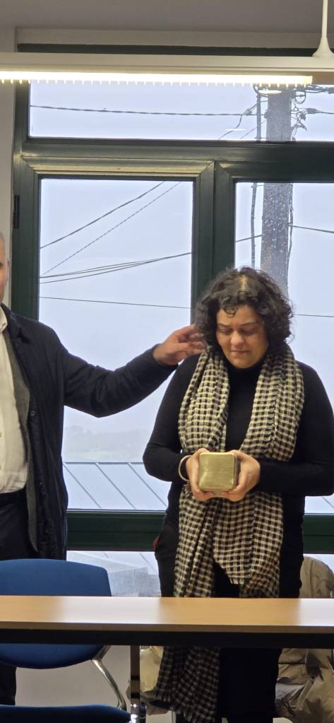 Tras o poema, tomou a palabra Rebeca Martínez, sobriña neta de Casto Martínez Parada, para a continuación proceder á colocación do Stolperstein.